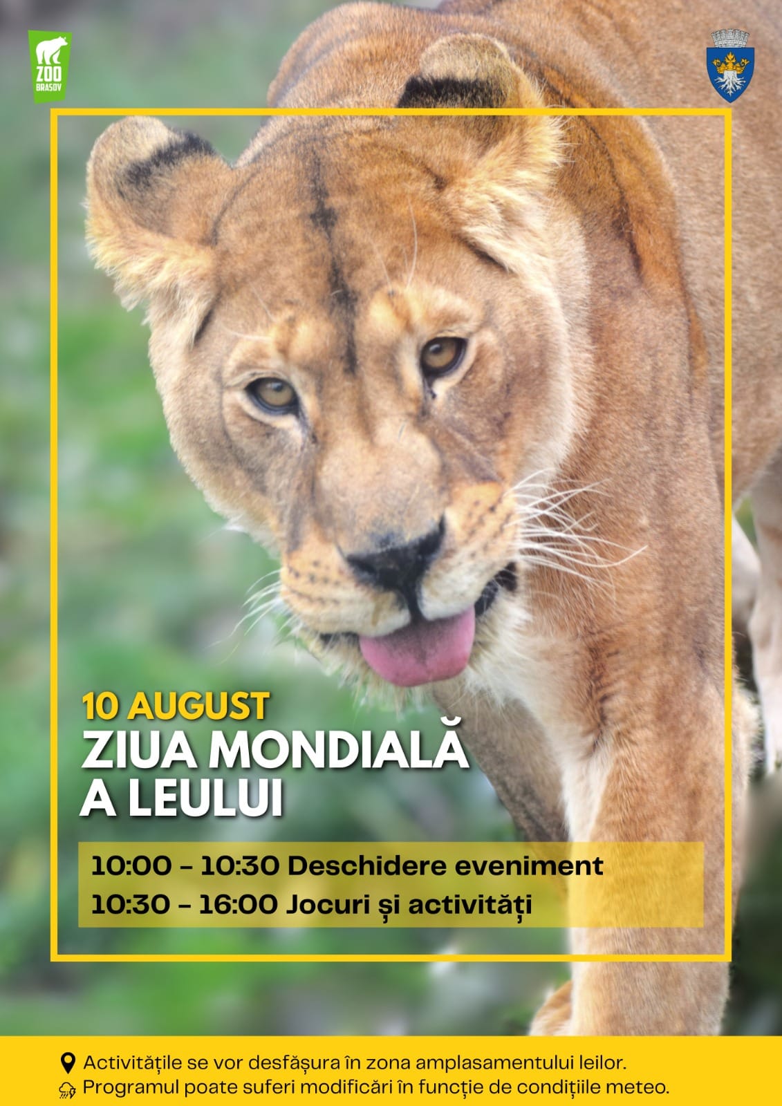 Duminică, 10 august, între orele 10:00 – 16:00, Grădina Zoologică Brașov sărbătorește Ziua Mondială a Leului – o ocazie importantă de a descoperi mai multe despre viața acestui prădător magnific, simbol al forței, prin ateliere și activități tematice, dedicate tuturor vârstele.