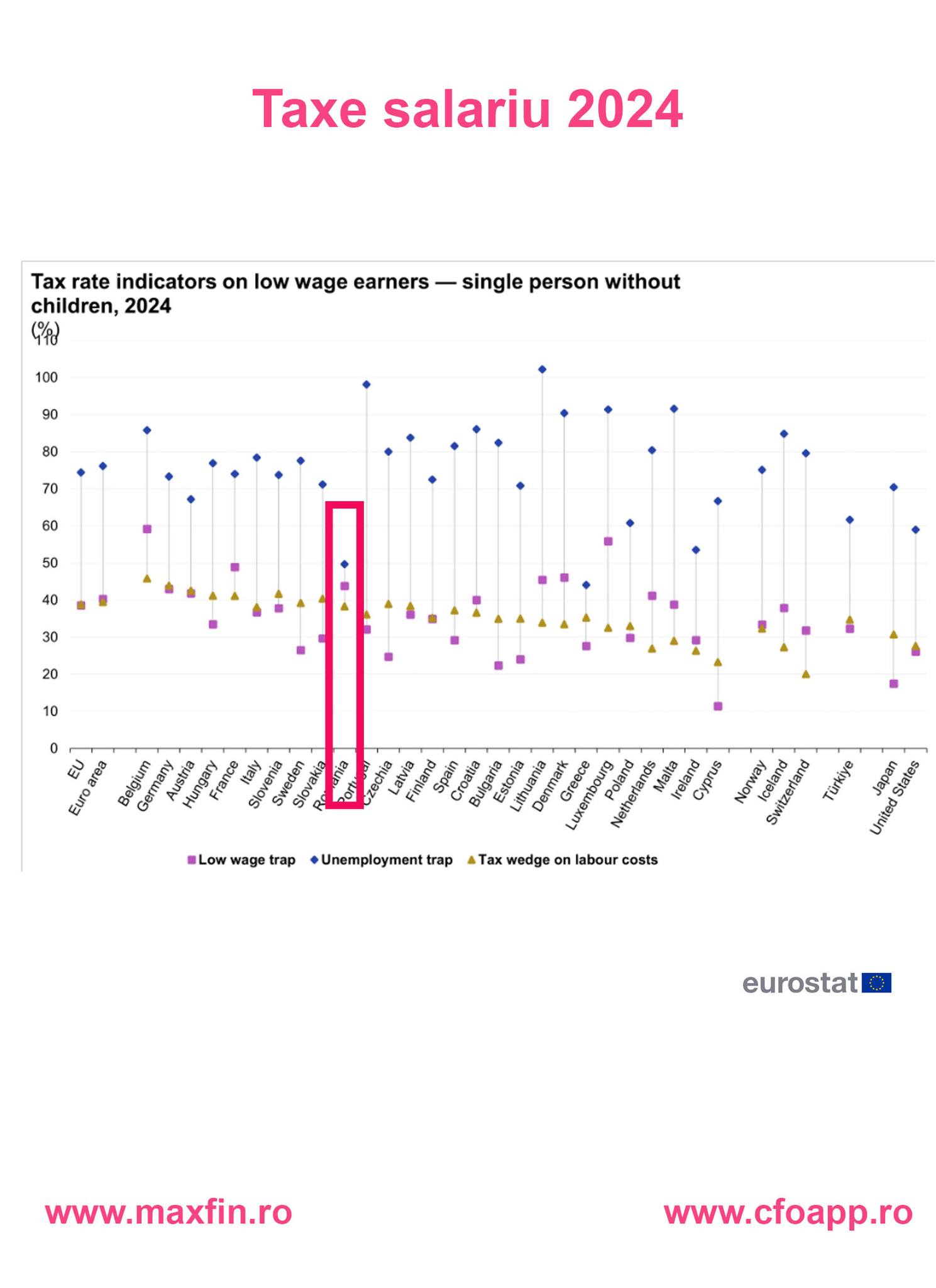 De asemenea Eurostat spune Romania are printre cele mai mari taxe pe salarii