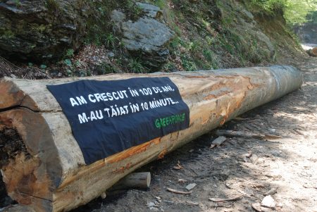 Protestatarii au ocupat arborii cu corturi speciale și au afișat bannere cu mesajul „Salvați Ultimele Păduri Virgine” în limbile română și engleză.