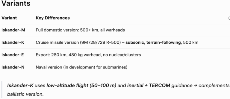 Concluzie: Iskander este cel mai eficient sistem convențional de atac al Rusiei, capabil să distrugă apărarea aeriană, centrele logistice și centrele de comandă pe o rază de 500 km ‒ adesea înainte ca inamicul să poată reacționa. Istoricul său de luptă real în Ucraina dovedește atât letalitatea, cât și vulnerabilitatea sa față de apărarea pregătită.