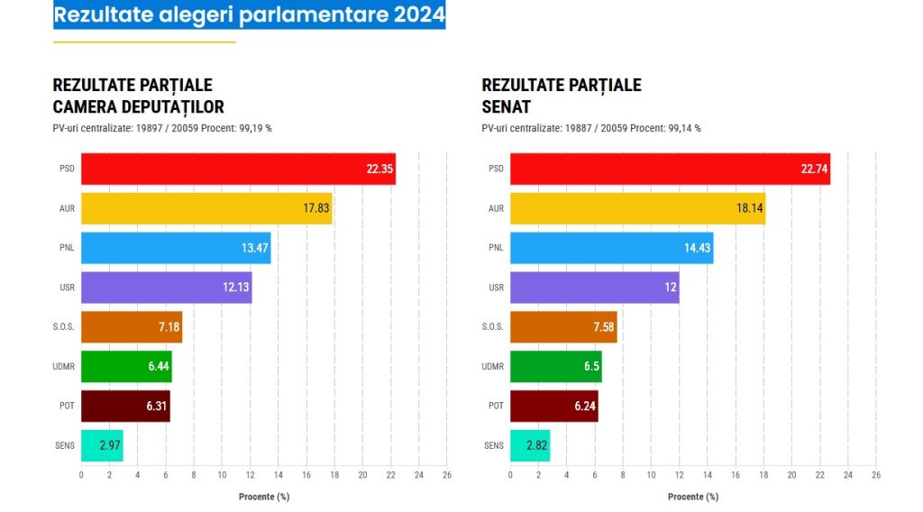 Alegeri parlamentare 2024 rezultate după numărarea a 99% din secțiile de vot