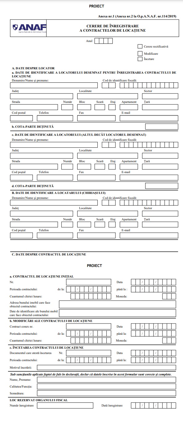 ANAF a publicat modelul cererii pe care, cei care obțin venituri din chirii, trebuie să o depună