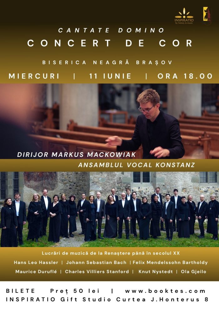 În data de 11 iunie, ora 18.00, Biserica Evanghelică C.A. din România – Parohia Brașov invită publicul la un concert coral susținut de Ansamblul Vocal Konstanz (Germania), sub bagheta dirijorului Markus Mackowiak.