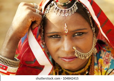 În foto stanga femeie din Rajasthani, deșertul Thar din India