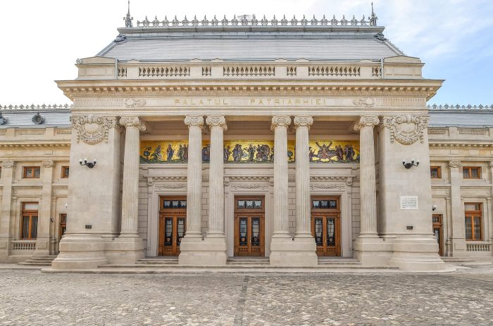 In foto sus, Palatul Patriarhiei în prezent; clădire în care a functionat Marea Adunare Natională, respectiv Parlamentul României după anul 1989.