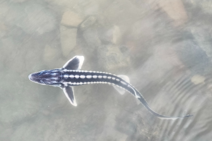 Sturionii eliberați în apele fluviului au un an și poartă marcaje speciale pentru monitorizare.