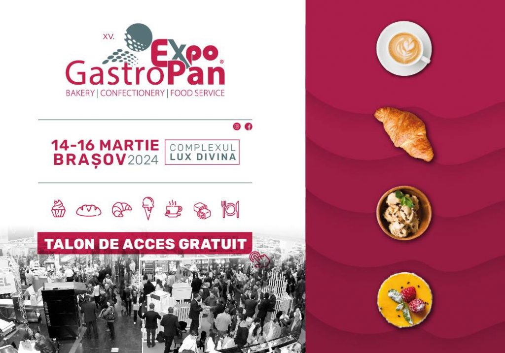 A 15-a ediţie a expoziţiei GastroPan, cel mai important eveniment dedicat tehnologiilor şi soluţiilor profesionale pentru industria de panificaţie, cofetărie şi HoReCa, se va desfăşura în perioada 14 – 16 martie 2024, la Braşov, în centrul Centrul Lux Divina.