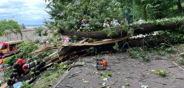 Două persoane au fost surprinse de prăbușirea unui copac pe aleea de sub Tâmpa(Aleea Tiberiu Brediceanu), destabilizat în timpul furtunii de alaltăieri cu vânt puternic, un tânăr de 27 de ani pierzându-și viața, cealaltă fiind rănită.