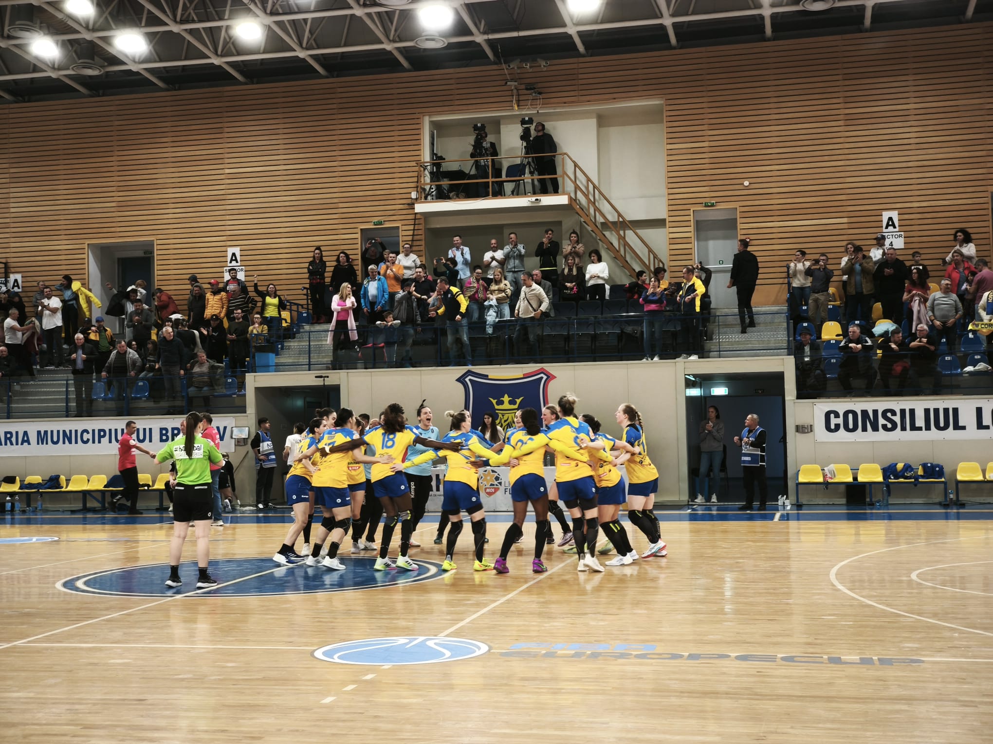 Runda început sâmbătă, 4 octombrie, cu meciurile: HC Zalău – CSM Târgu Jiu 25-26, CSM Galați – Minaur Baia Mare 24-28 și Corona Brașov – CSM Slatina 28-26 (FOTO, cu gazdele în galben-albastru), în Sala Sporturilor „Dumitru Popescu Colibași” din Brașov.