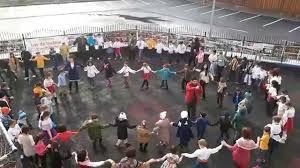 De la clasa pregătitoare până în clasa a opta, sute de elevi s-au prins în hore chiar în curtea şcolii.