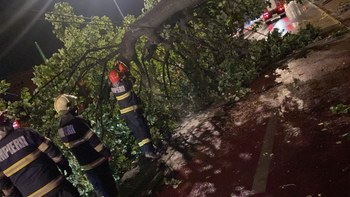 S-a acționat rapid pentru degajarea copacului și eliberarea zonei, prevenind alte posibile pericole în contextul condițiilor meteorologice instabile.