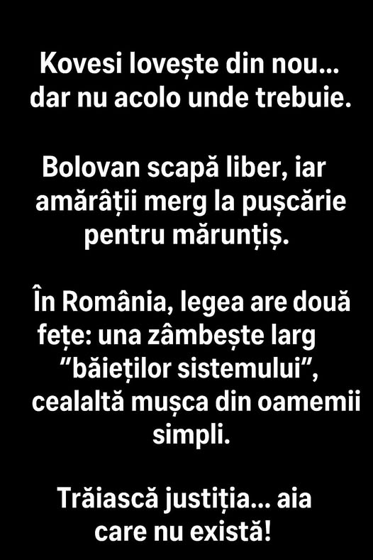 KOVESI, ÎNGERUL PĂZITOR AL „BĂIEȚILOR SISTEMULUI” – BOLOVAN SCAPĂ LIBER, PROSTIMEA PLĂTEȘTE