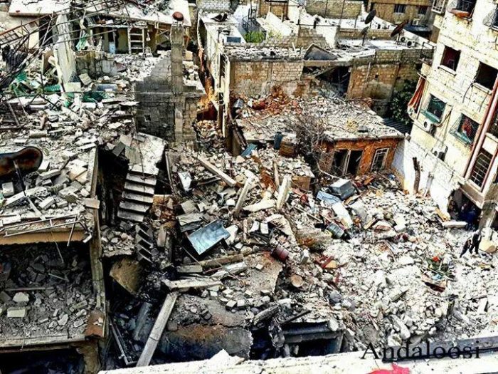 Invaziile americanilor (în cele peste 30 de state independente și membre ale ONU) au lăsat în urma lor dezastre greu de imaginat, comparabile cu cele ale unor seisme de 8-10 grade pe scara Richter. În foto consecința „PRIMAVERII ARABE”, a bombardamentelor din Siria și Irak.