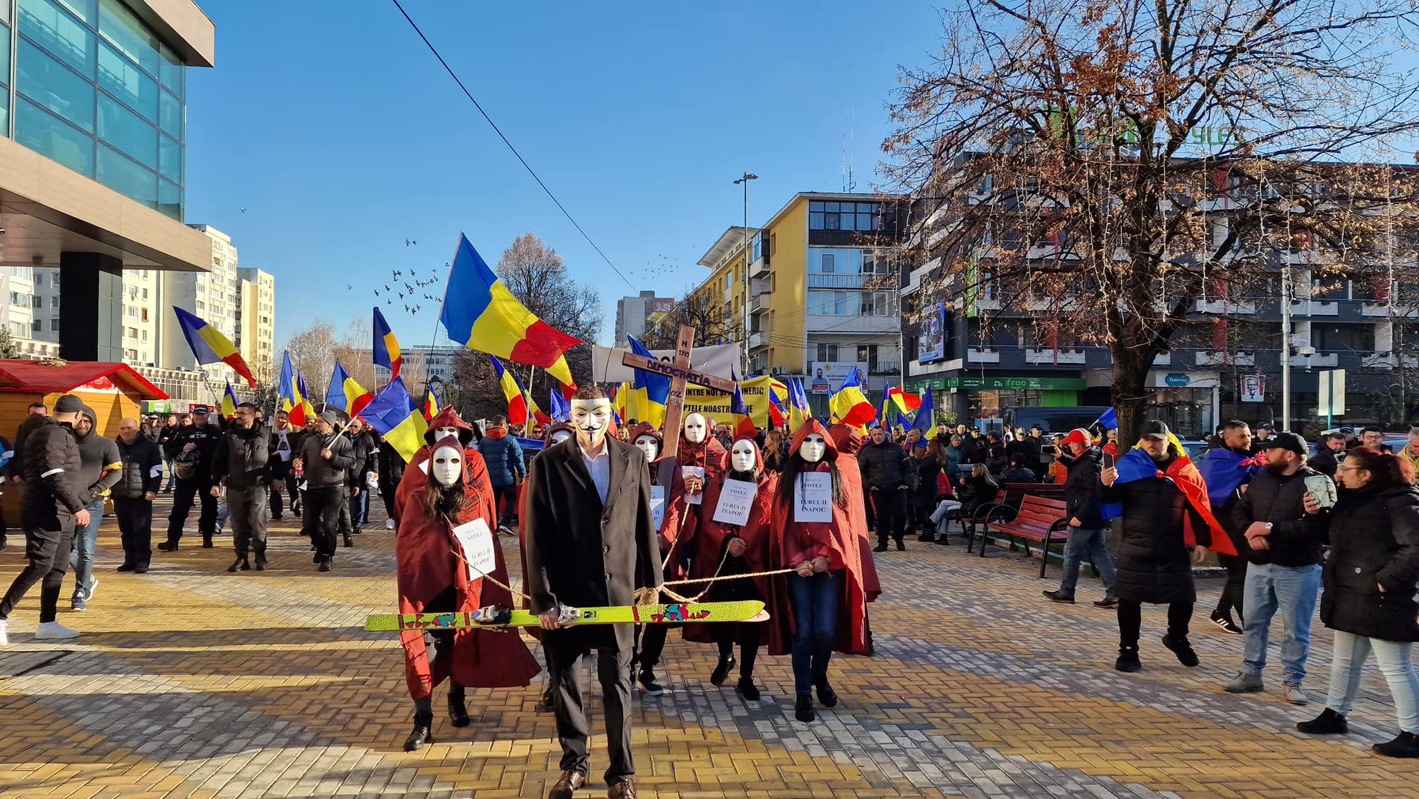 2. În foto centru cei 9 judecători manipulați de WK Iohannis; protest Pitești 18 ian. a.c.