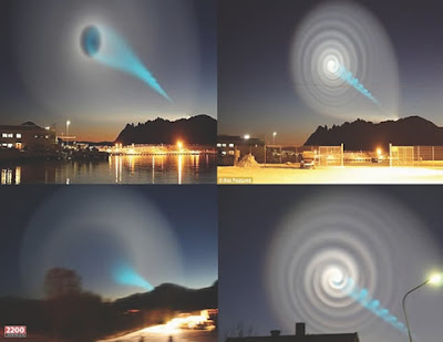 Pe 10 decembrie 2009, o spirală albastră ciudată şi-a făcut apariţia pe cerul Norvegiei.