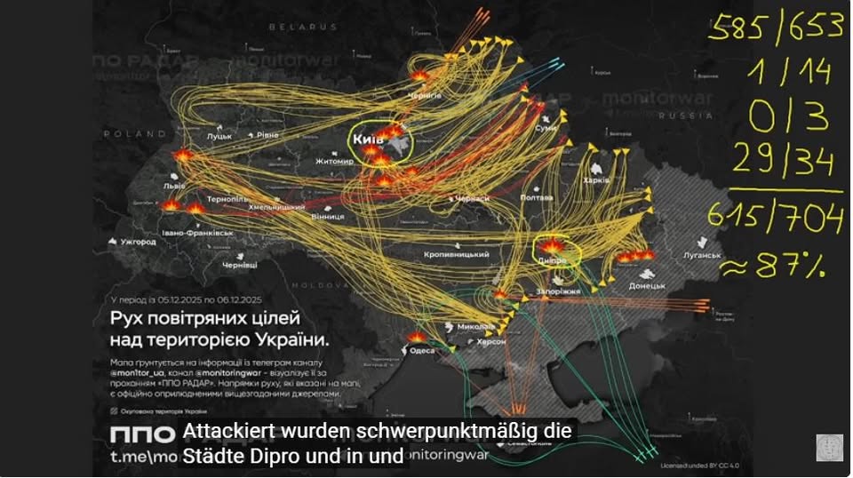 In noapatea de 5 spre 6 decembrie 2025, rusii au atact Ucraina cu cca. 700 de drone si rachete, care au distrus o gara, depozite de alimente si medicamente, mai multe teromcentrale si statii de transformare, ceea ce a produs in toata Ucraina caderi de curent electric.