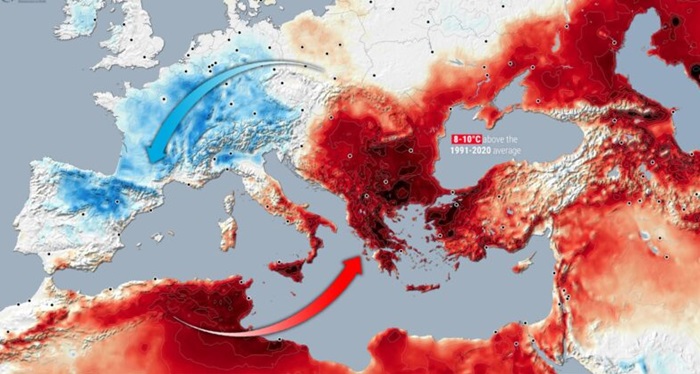 Domul de caldura este un anticiclon cantonat in zona Marii Mediterane, fara acces la aer rece. Datorita circulatiei descendente (prezente in toti anticiclonii), aerul cald este blocat la sol, fiind incalzit si reincalzit.