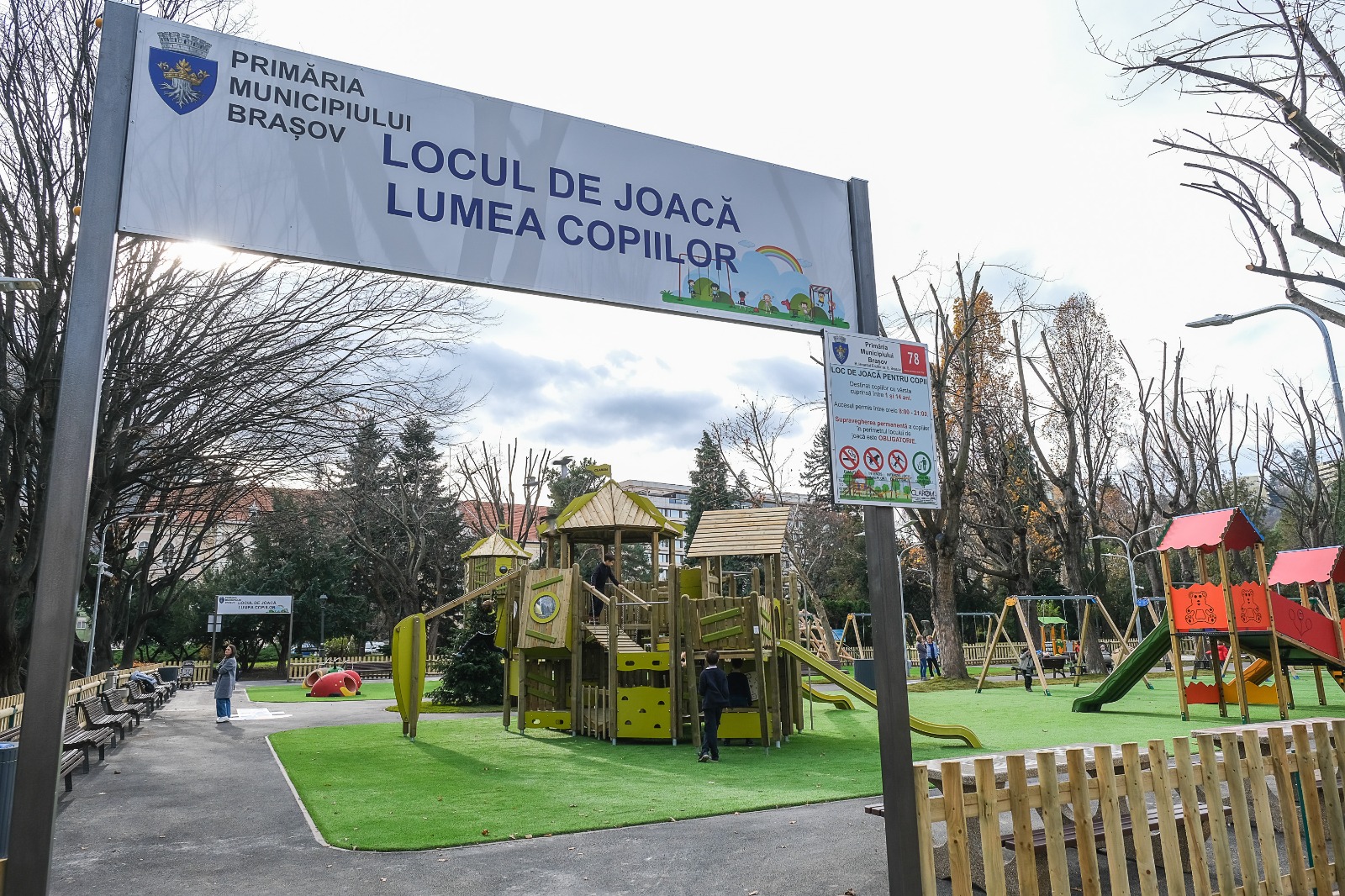 Primăria a finalizat o nouă zonă de recreere pentru cei mici în cadrul programului de amenajare și modernizare locuri de joacă în municipiul Brașov, ,,Lumea copiilor”, din Parcul Titulescu. Lucrările începute acum două luni au transformat vechiul loc de joacă  într-unul mai prietenos, cu mai multe facilități, dar și cu soluții moderne de siguranță.