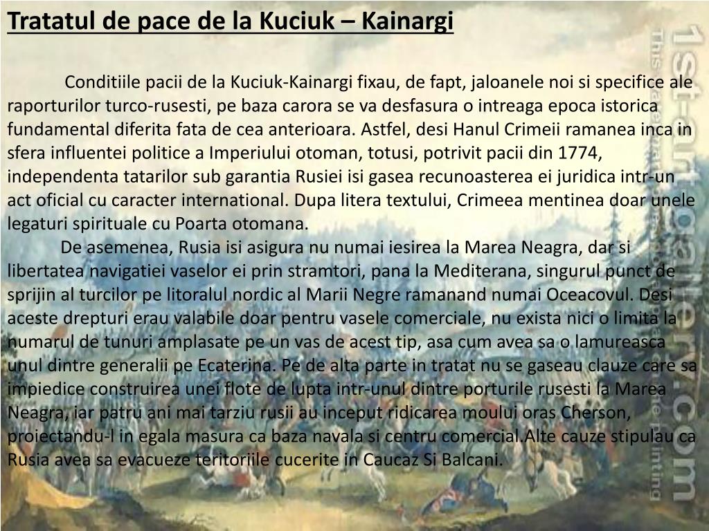 „Fără îndoială este de dorit ca în vreme ce facem pace cu Franţa să ne putem păstra capacitatea de a negocia direct cu Poarta. Însă deoarece nu se va putea evita intervenţia lui Napoleon în acest aranjament va trebui să obţinem timp şi să promitem evacuarea celor două principate în schimbul condiţiei că, până la încheierea păcii definitive între Rusia şi Franţa, Moldova şi Valahia se vor bucura deplin de drepturile şi privilegiile obţinute prin pacea de la Kuciuk-Kainardji” (p. 565).Tratatul de pace de la Tilsit, din 7 iulie 1807, stipula la articolul 22: