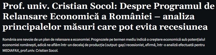 Prof. univ. Cristian Socol: Despre Programul de Relansare Economică a României