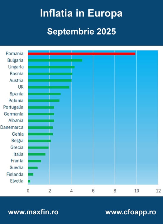 Marți s-a publicat raportul cu inflatia pe septembrie pentru toate tarile din Europa