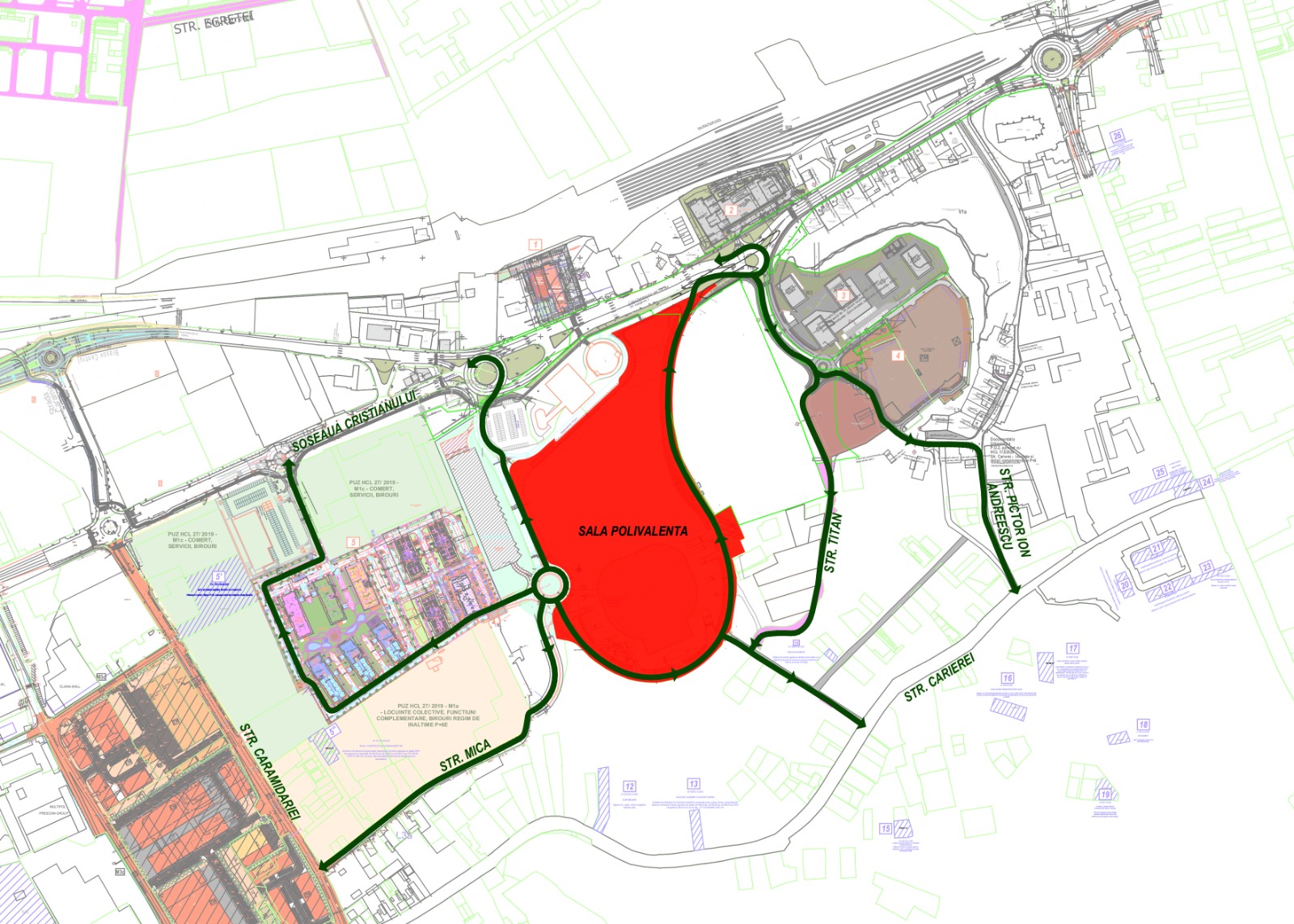 Una dintre principalele propuneri de sistematizare vizează amenajarea mai multor sensuri giratorii care să faciliteze defluirea de la Sala Polivalentă și Park & Ride, dar și optimizarea accesurilor spre dezvoltările din zona respectivă. Astfel, un sens giratoriu va fi amenajat la intersecția Căii Făgărașului cu Șoseaua Cristianului, unul în lateralul sălii polivalente, la intersecția cu str. Mică, iar al treilea va fi amenajat la ieșirea în Calea Făgărașului, dinspre str. Titan, în zona stației Rompetrol.