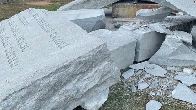 În relatarea de față este vorba de distrugerea cunoscutului simbol globalist-satanist „Georgia Guidestones”, despre care, iată, se poate vorbi la timpul trecut.