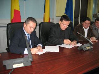 In timpul asta caraghiosul Brasovului, infractorul Cancescu a asfaltat o fasie de pajiste de 2.850 m, (in foto Cancescu A., Nita C. si constructorul Butuza in momentul semnarii contractului) in mijlocul campului, botezata…”pista de decolare”. Adica 30 de milioane de euro ingropate in miriste, ce vor deteriora rapid asfaltul pus de Butuza degeaba! (ddr)