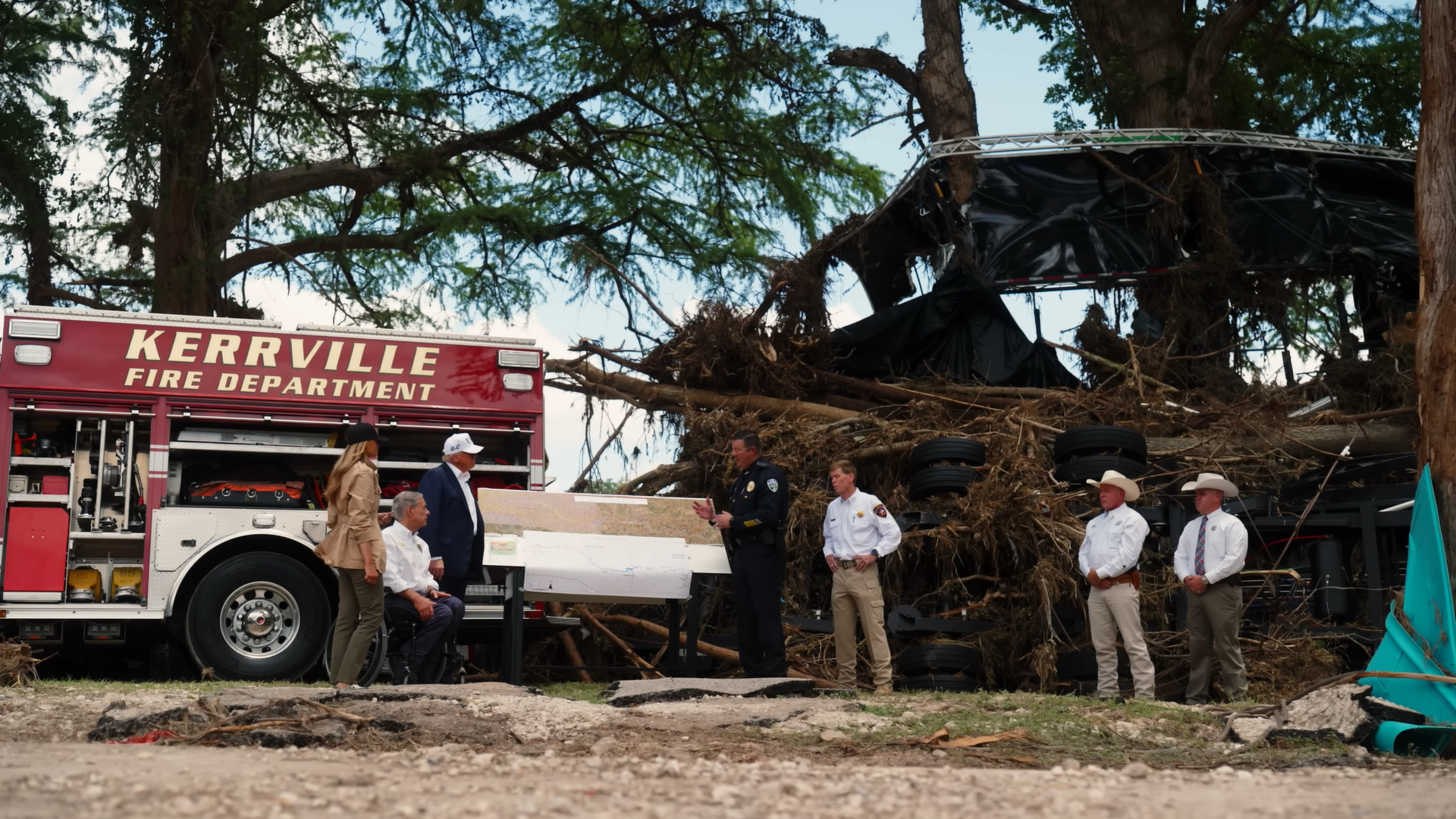 Sunt doar cîteva zile de cînd șeful celei mai mari puteri a planetei s-a urcat în elicopter și a mers în zonele inundate din Kerrville, Texas, după inundațiile care au ucis peste 120 de persoane. Cu tot cu Prima Doamnă Melania.