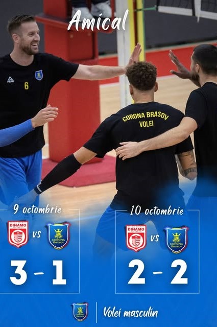 Echipa de volei masculin Corona Brașov a încheiat seria meciurilor de pregătire cu două confruntări în Ștefan cel Mare, împotriva campioanei Dinamo București.